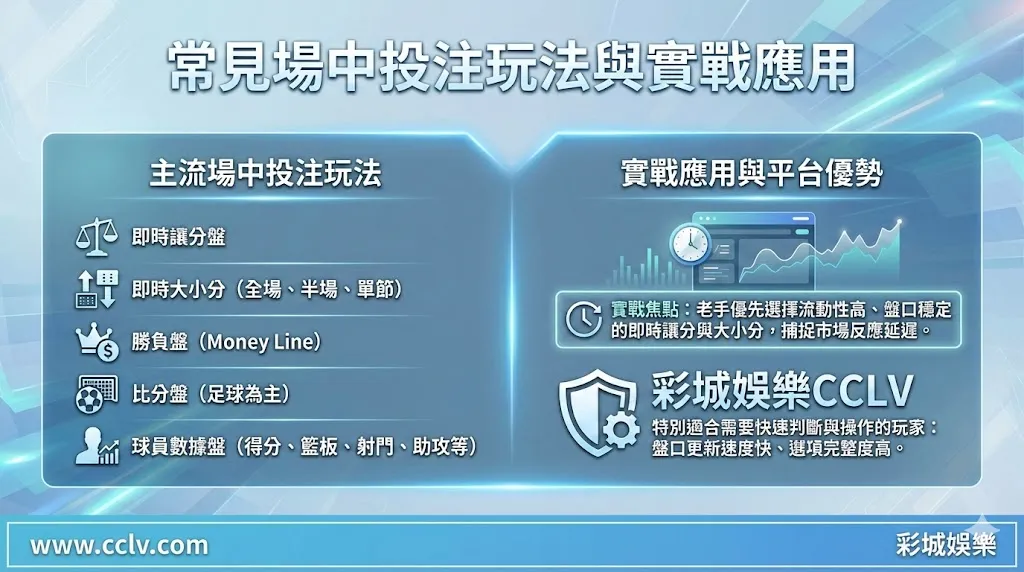 在實戰中,多數老手會優先選擇流動性高、盤口穩定的即時讓分與大小分,因為這類盤口最容易出現市場反應延遲。