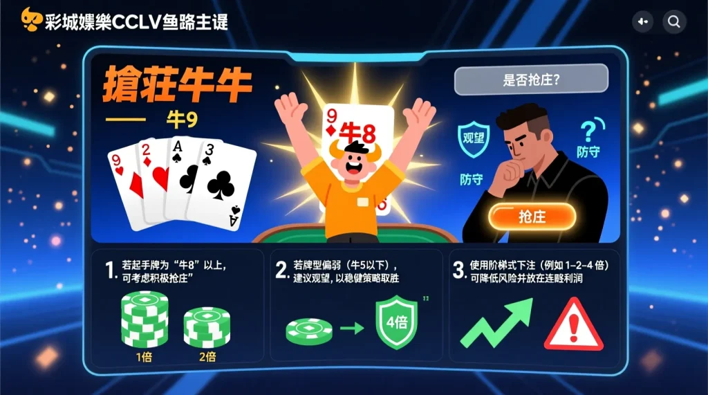 當手牌達牛7以上時積極出擊,低於牛5時則採防守觀望,能有效提升勝率。